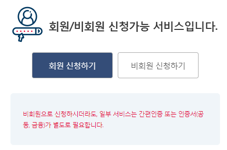 3. 토지대장은 회원 비회원 모두 신청가능 서비스입니다. 선택해서 클릭하세요.