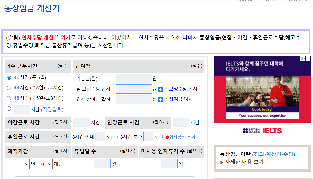 다소 복잡헤보이는 계산을 통상임금 계산기를 통해 빠르게 확인 가능합니다.