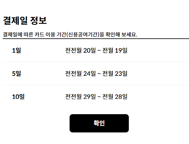 결제일에 따른 카드 이용기간(신용공여기간)이 다르기 때문에 전·후의 결제일이나 신청하신 날짜에 따라 적용 월이 달라질 수 있습니다.